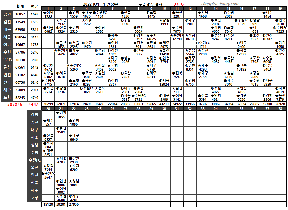 ● K리그1 관중수, K리그1 평균관중수, 2022 K리그1 관중수, 2022 K리그1 평균관중수