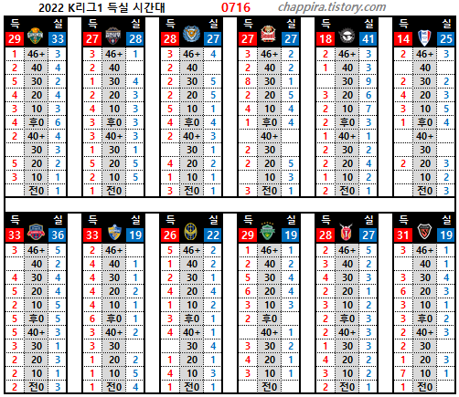 ● K리그1 득실 시간대, 2022 K리그1 득실 시간대,K리그1 득점 시간대,K리그1 실점 시간대