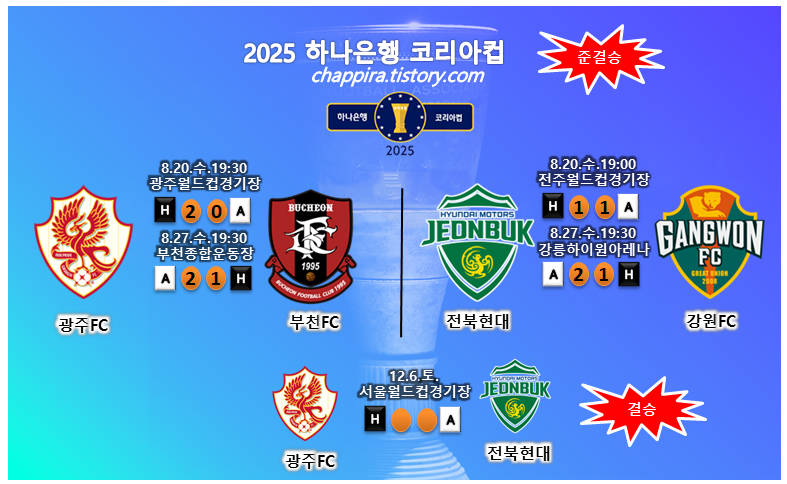 ● 2025 하나은행 코리아컵 준결승 결과, 대진,시간, 관중수